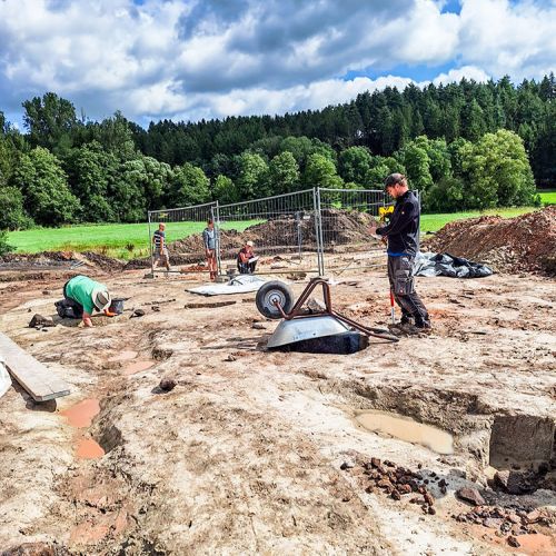 Zusammen konnte die Mannschaft die Fläche in zügigem Tempo weiter ausgraben und die Pfosten bergen, die in der Woche zuvor bereits entdeckt wurden. Besonders gefreut haben wir uns wieder über den Besuch von Dr. Marcus Reuter.
