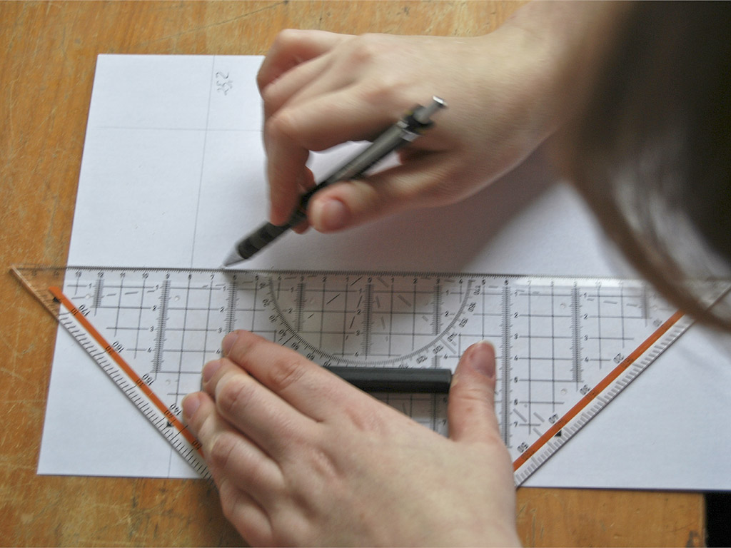 Durch die Punkte, die zuvor mit der Schieblehre ermittelt wurden, kann nun genau gesagt werden, wie man die „Schablone“ anlegen muss. Diese zeichnet man dann wieder nach. Auch hier können nachher Korrekturen mit dem Radiergummi gemacht werden. |
