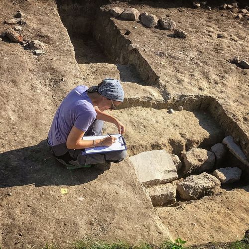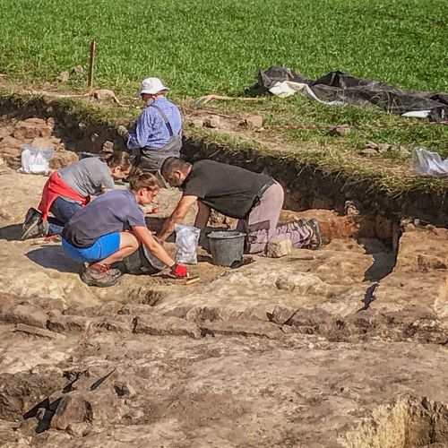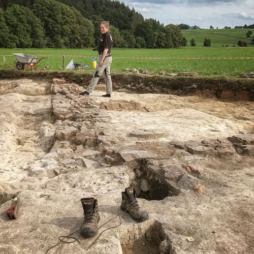 Auf der neuen Grabungsfläche sind bereits vor vielen Jahren Oberflächenfunde gemacht worden. Außerdem haben geomagnetische Untersuchungen Gebäudestrukturen erkennen lassen. Diese Angaben konnten dann auch in den ersten Grabungstagen bestätigt werden.