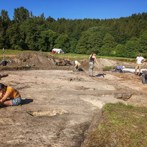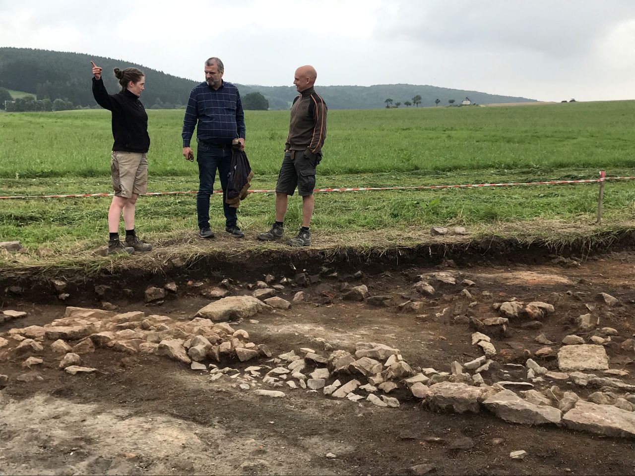Besonders gefreut haben wir uns über Besuch aus Trier: Dr. Marcus Reuter, Direktor vom Rheinischen Landesmuseum war vor Ort um sich persönlich ein Bild von der Grabungskampagne 2021 zu machen. Während einer Führung gemeinsam mit Dr. Peter Henrich und Johanna Steffestun war Gelegenheit ausführlich über die Befunde zu diskutieren. Sein Fazit: Weiermühle wird uns in Trier noch lange beschäftigen! Dieser Meinung sind wir auch.
