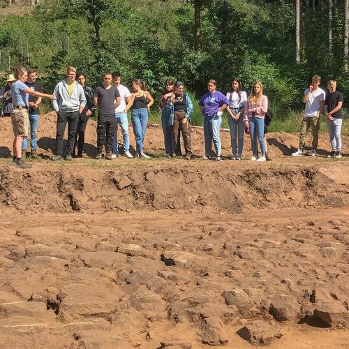 Am Montag, 23.08.2021 war Start auf der Gemarkung Auel, am Heidberg. Die dort vorab lokalisierte Römerstraße ist mit Unterstützung des Baggers frei gelegt worden, jedoch waren trotz der gemachten Oberflächenfunde keine weiteren Strukturen zu finden.