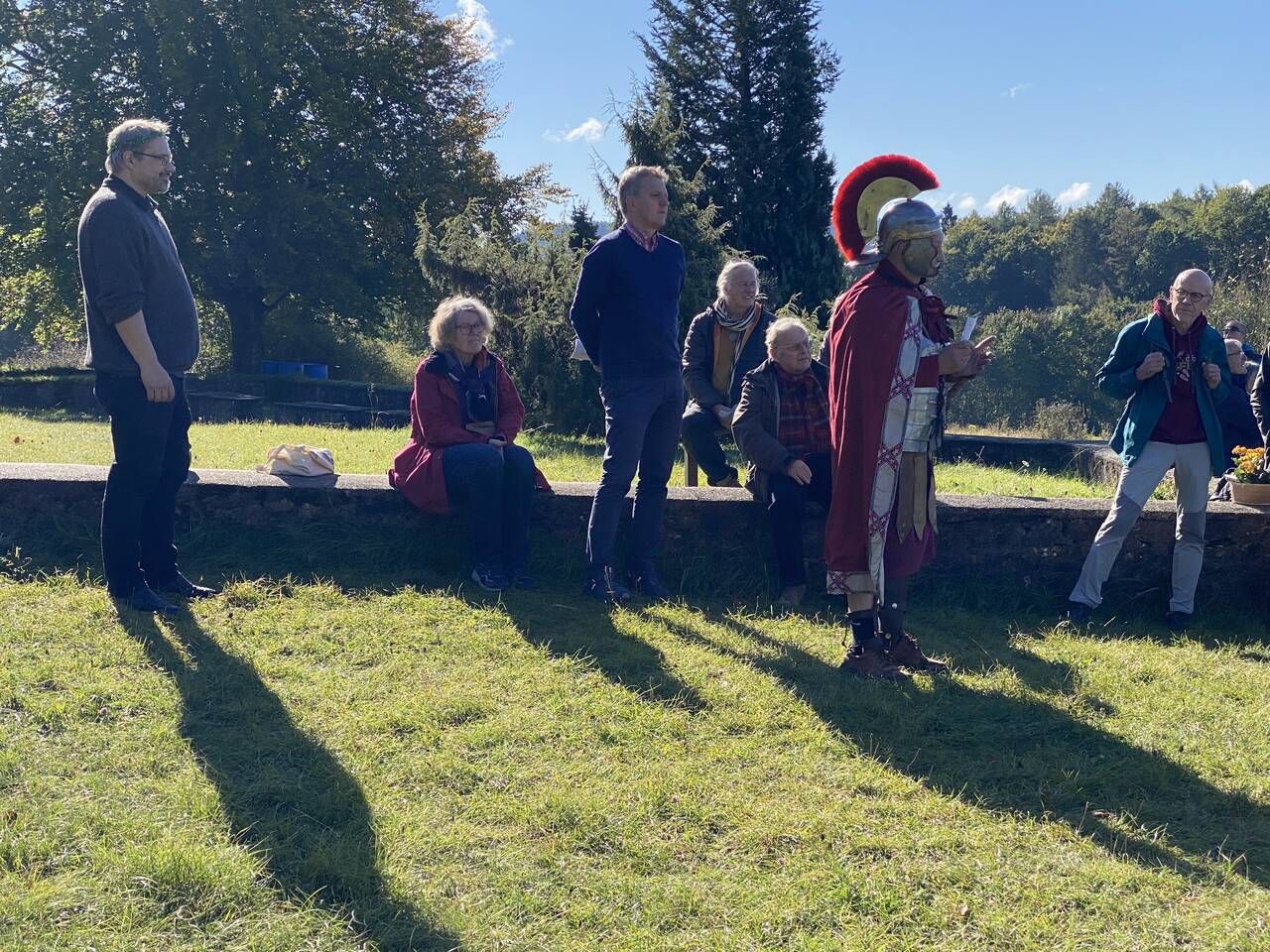 Gerd Rieder, bestens vertraut mit der römischen Geschichte, begrüßte die Gäste und eröffnete stilgerecht in der Ausrüstung eines römischen Lengionärs die Geburstagsfeier. Als Vertreter der kommunalen Familie sprach anschließend Verbandsbürgermeister Hans Peter Böffgen ein Grußwort.