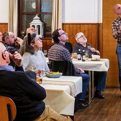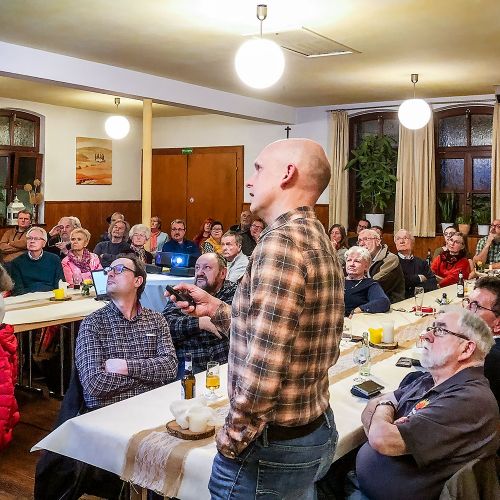 Mit Spannung erwarteten die Zuhörerinnen und Zuhörer im gut besetzen Saal Sünnen, Steffeln, nach der Mitgliederversammlung am 22.03.2024 den Vortrag vom wissenschaftlichen Projektleiter der archäologischen Forschungen in Duppach-Weiermühle, Dr. Peter Henrich.
