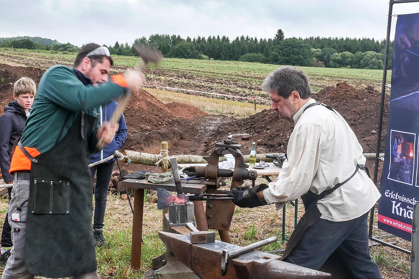 - > Als besonderes Highlight wird unser Duppacher Schmied, Thomas Knauf, eine Axt aus dem 5. Jahrhundert auf dem Grabungsgelände nachschmieden