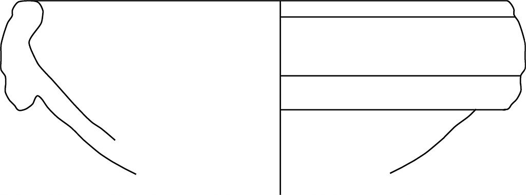 Zurück bleibt eine sehr schwache Linie, die man nun nachzeichnen kann. Es folgt nun noch das Zeichnen diverser Linie und der Außenkante. Wichtig ist dabei zu beachten, dass man auf dieser Seite die Außenansicht der Scherbe hat und somit nur das zu sehen sein darf, was man von außen sehen kann.