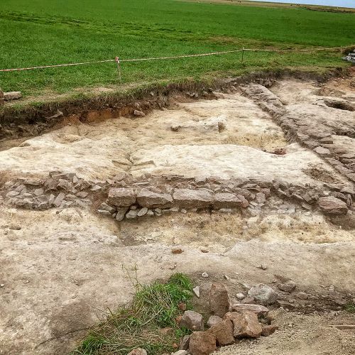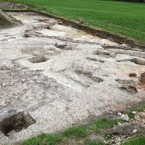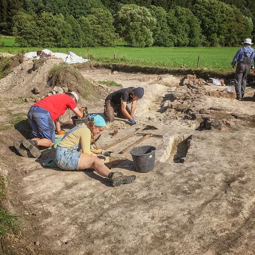Auf der neuen Grabungsfläche sind bereits vor vielen Jahren Oberflächenfunde gemacht worden. Außerdem haben geomagnetische Untersuchungen Gebäudestrukturen erkennen lassen. Diese Angaben konnten dann auch in den ersten Grabungstagen bestätigt werden.