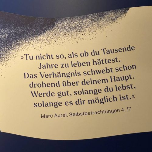 In seinen Aufzeichnungen, die wohl größtenteils während seiner Feldzüge entstanden sind, verfasste er ein besonderes Werk: SELBSTBETRACHTUNGEN – diese gehören zu den eindrucksvollsten Texten der Weltliteratur.
