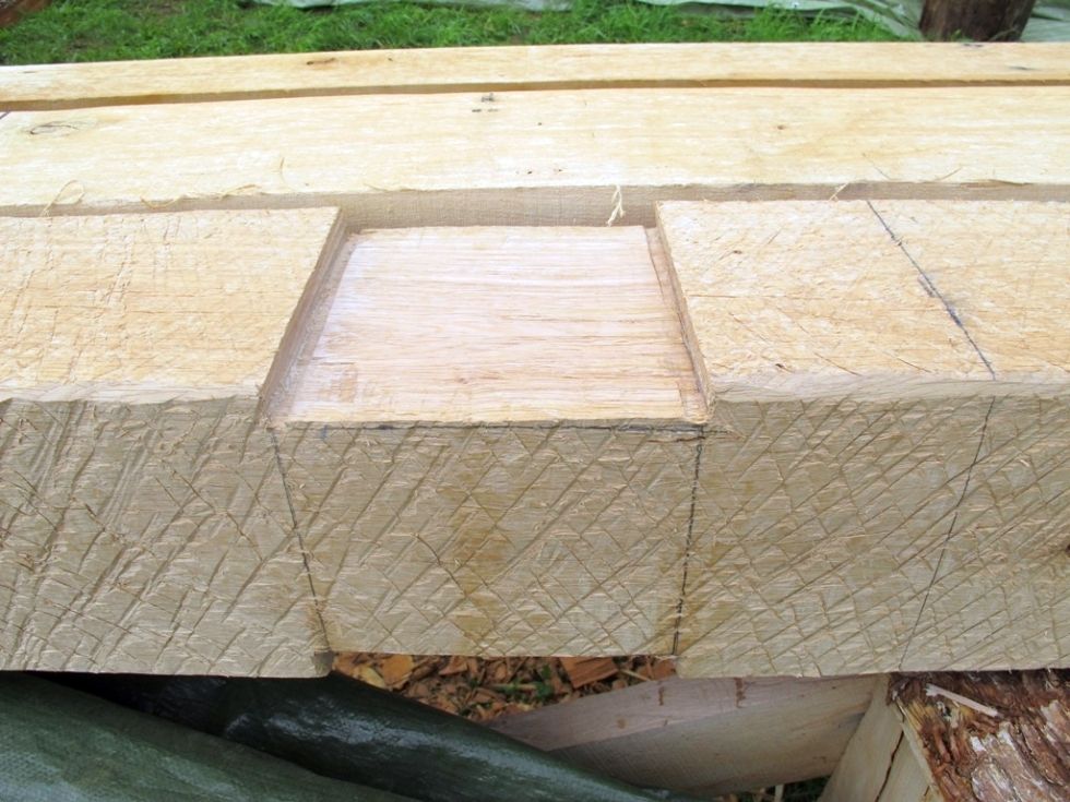 Direkt aufmunternd wirkt es, wenn dann zwischendurch Besuchergruppen vorbei schauen und wenn am ersten Balken Aussparungen eingearbeitet werden dürfen. Endlich ist etwas anderes als nur die eintönigen Schläge der Äxte zu hören.