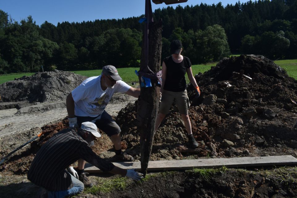 Einer der Pfähle wird mit Unterstützung des Baggers geborgen | Sophie von Pronay/AFVD