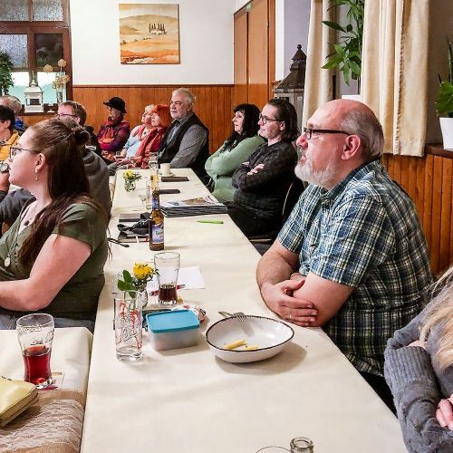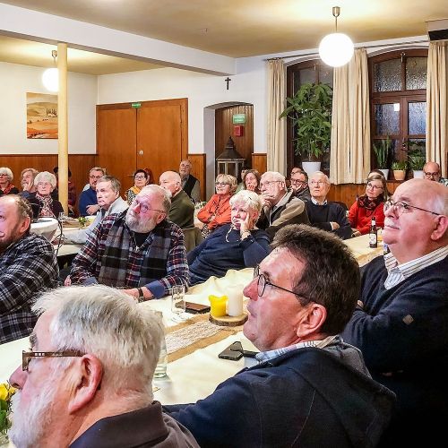 Mit Spannung erwarteten die Zuhörerinnen und Zuhörer im gut besetzen Saal Sünnen, Steffeln, nach der Mitgliederversammlung am 22.03.2024 den Vortrag vom wissenschaftlichen Projektleiter der archäologischen Forschungen in Duppach-Weiermühle, Dr. Peter Henrich.